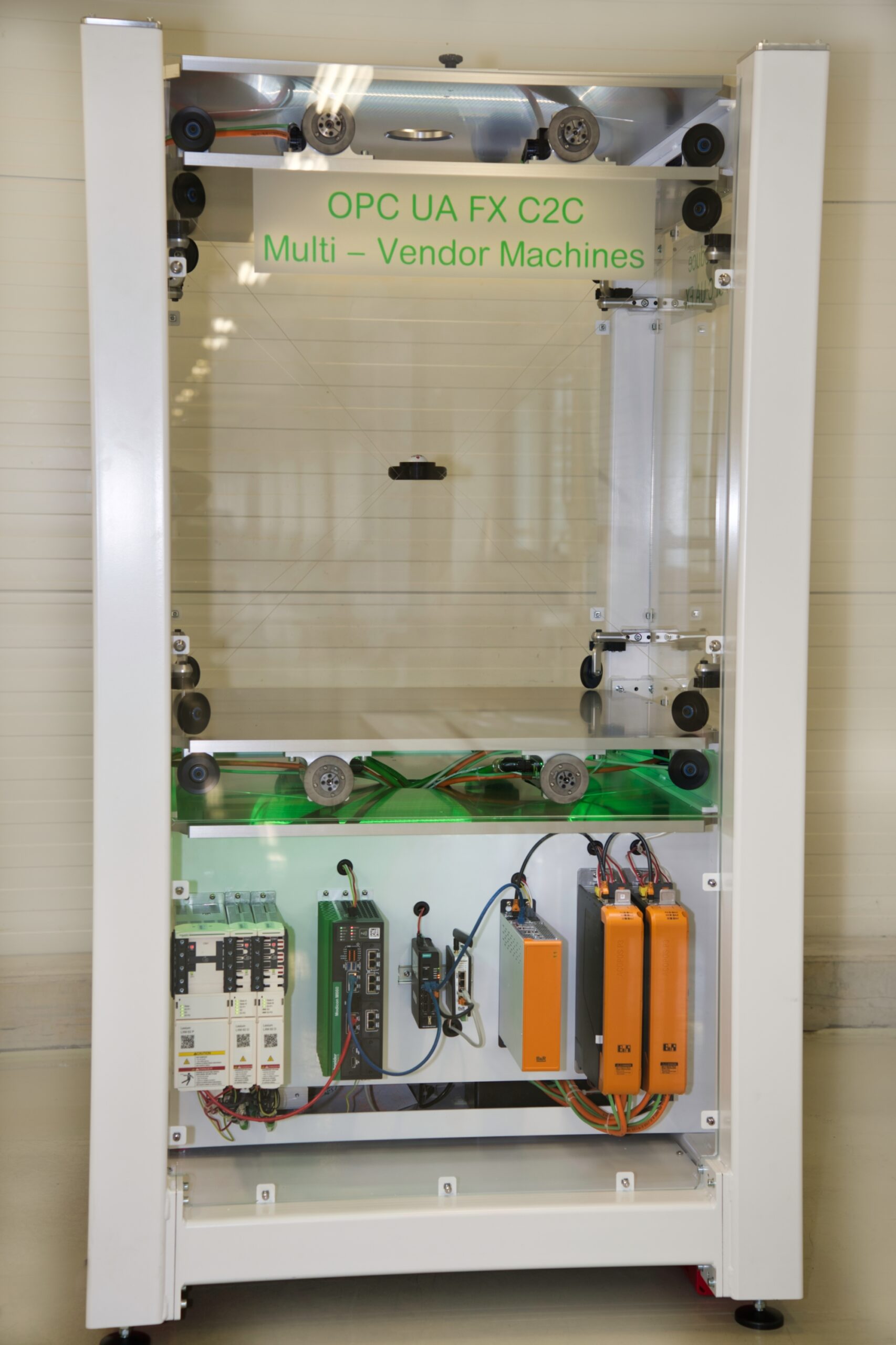 At the show, a joint demo by B&R, Moxa, and Schneider Electric showcased OPC UA FX C2C interoperability in a coordinated multi-axis cable robot scenario. The setup demonstrated cross-vendor synchronization, motion coordination, and real-time communication behavior using the OPC UA FX C2C communication model.